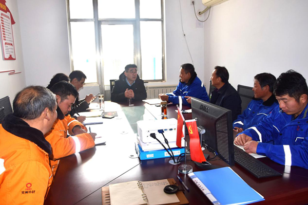 12月17日中材礦山建設(shè)有限公司總經(jīng)理郭正勇、兗州中材建設(shè)有限公司黨委副書記何芳訓(xùn)、中材礦山黨群部長鄔云齊齊格一行到兗州中材棗莊申豐工程處進行工作調(diào)研。  山東申豐水泥集團黨委書記陳軍、副總經(jīng)理潘洪強等業(yè)主方領(lǐng)導(dǎo)、兗州中材棗莊申豐工程處經(jīng)理康斌、兗州中材淮海分公司經(jīng)理李勁松等陪同郭總一行視察礦山施工現(xiàn)場。期間,郭總指出,礦山生產(chǎn)智能化是實現(xiàn)習(xí)總書記綠色、環(huán)保發(fā)展理念的重要方向,應(yīng)積極研究和推進。   郭總詳細詢問了每位職工的工作、學(xué)習(xí)、生活、家庭等情況并給予親切關(guān)懷和熱情鼓勵。中材礦山黨群部格部長對基層黨建工作做了深入了解,對黨支部線上、線下工作安排提出了建設(shè)性意見。 公司副書記何芳訓(xùn)對分公司黨建工作做了總結(jié)性發(fā)言并提出了新的目標和要求。