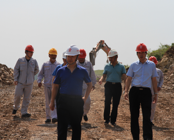 在礦山現(xiàn)場(chǎng),孫總聽取了分公司經(jīng)理白鳳龍關(guān)于采面情況和目前所面臨問題的匯報(bào)后,到開采平臺(tái)、破碎站,對(duì)穿孔作業(yè)、鏟裝作業(yè)、道路運(yùn)輸、破碎作業(yè)等工作進(jìn)行安全檢查。