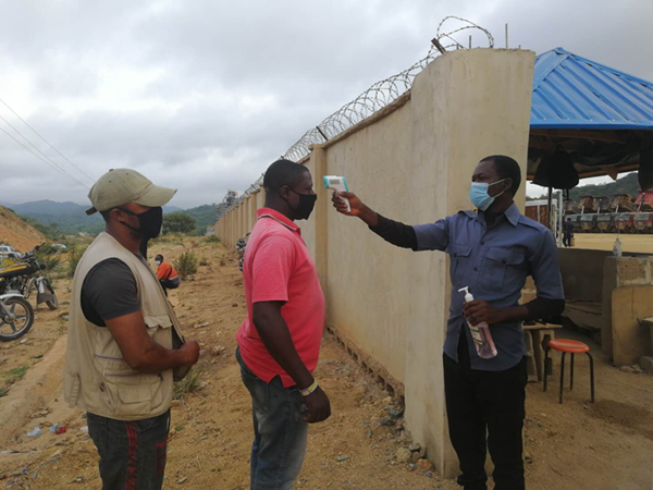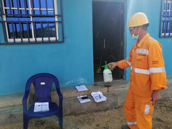 自新型冠狀病毒肺炎疫情發(fā)生以來,尼日利亞項目部領導按照公司統(tǒng)一安排,高度重視疫情防控工作,加強領導,根據(jù)當?shù)匾咔樾蝿?,把責任抗在肩上,抓在手中,采取有力措施,確保疫情防控和生產工作順利進行。堅持每天督查安全,督促生產;實時通報國內疫情防控情況,及時了解尼日利亞的疫情動態(tài),加強疫情防范措施的宣傳,堅持涉外無小事原則,積極傳播正能量。同時,密切關注職工思想動態(tài),解決職工實際困難,穩(wěn)定隊伍保證生產;項目部想盡各種方法聯(lián)系購買渠道購買防護口罩、消毒液、免洗手消毒液醫(yī)用酒精等,對宿舍,辦公室,工作場所等進行定期消毒。食堂增加每日的肉品供應量,增強職工的免疫力。營地大門口實行封閉式管理。多項舉措做好疫情防控和隊伍穩(wěn)定工作;同時項目部制定和完善各項應急預案,根據(jù)疫情的發(fā)展情況,適時啟動應急預案,做出相關決策。 主要措施: 1、項目部對外部進場人員實行嚴格準入制度,對符合疫情防控要求的人員準予進入工地。 2、對工地內工作人員(包括當?shù)貑T工),建立健康監(jiān)測制度,每天兩次對全部人員進行體溫測量和登記,發(fā)現(xiàn)發(fā)熱特別是伴有咳嗽、咽喉腫痛等狀況身體異常人員,立即采取隔離、送醫(yī)等應急處置措施。  當?shù)貑T工進場前體溫檢測  當?shù)貑T工洗手液消毒 3、做好宣傳教育工作,派發(fā)資料及宣傳疫情防控知識,加強個人衛(wèi)生教育。  新冠疫情知識宣傳教育   4、對配送材料、物資等外來人員,不得車輛進場后,車上人員出駕駛室,貨物、物資有項目部安排工地內人員接受和裝卸,并做好安全防護措施。  對外來材料及車輛消殺 5、做好防范措施,車間、礦區(qū)配備測溫槍、消毒液、口罩等應急防范物品,保持宿舍空氣流通,落實衛(wèi)生消毒制度,切實做好施工現(xiàn)場衛(wèi)生管理、個人衛(wèi)生防護,及時開展的病媒生物防治與消殺,有效降低病媒生物密度。  接送員工上下班車輛消毒  對考勤等記錄消毒  對現(xiàn)場工棚消殺 防疫物資儲備  生活物資儲備 6、安排專人實施24小時值班和項目部領導帶班,并保持通信通暢。 7、實行日報告和零報告制度,做到早發(fā)現(xiàn)、早報告、早隔離、早治療,分層隔離,及時落實。 |