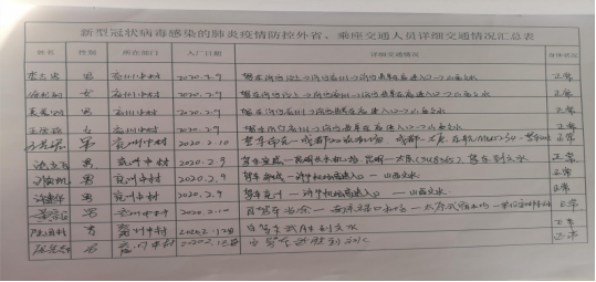8、我們做了員工排查,建立返崗人員登記制度對返回人員登記,每天微信群詳細(xì)記錄職工身體狀況、假期外出情況、與重點(diǎn)疫區(qū)人員接觸情況等信息;對每名員工近14天的去向進(jìn)行排查;對來自或去過疫情重點(diǎn)地區(qū)的員工建立重點(diǎn)監(jiān)控清單,規(guī)勸其留在當(dāng)?shù)貢翰粡?fù)工,鼓勵員工延遲上班;對來自或去過疫情重點(diǎn)地區(qū)的員工排查其抵達(dá)時(shí)間,按規(guī)定落實(shí)醫(yī)學(xué)觀察、隔離等措施,確保其隔離觀察14天并經(jīng)體溫檢測正常、無不適癥狀后方可上崗。進(jìn)入崗位工作前自覺接受體溫檢測,體溫正常方可進(jìn)入工作區(qū),并洗手消毒。嚴(yán)格執(zhí)行各項(xiàng)疫情防控要求,建立和落實(shí)復(fù)工上崗前個(gè)人防護(hù)知識培訓(xùn),多種方式普及傳染病防護(hù)知識,做到有癥狀早發(fā)現(xiàn)、早報(bào)告、早隔離、早治療。