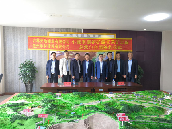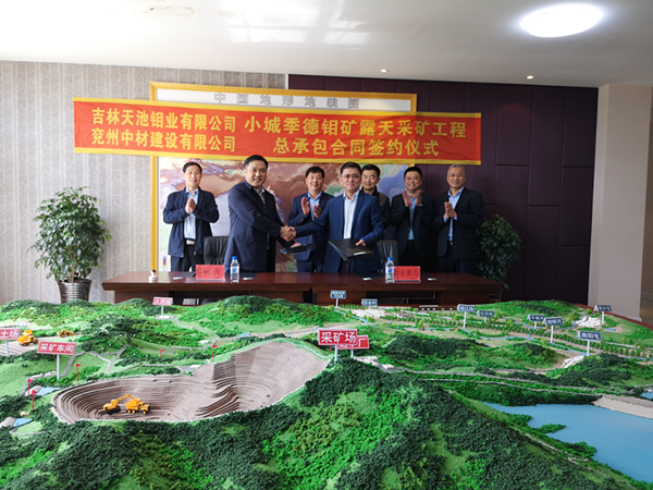 2019年5月28日8時58分,吉林舒蘭小城季德鉬礦露天采礦工程總承包合同簽約儀式在吉林天池鉬業(yè)有限公司舉行。參加簽約儀式的還有舒蘭市副市長明繼國、吉林天池鉬業(yè)和兗州中材相關(guān)負責人等。