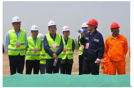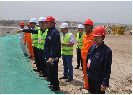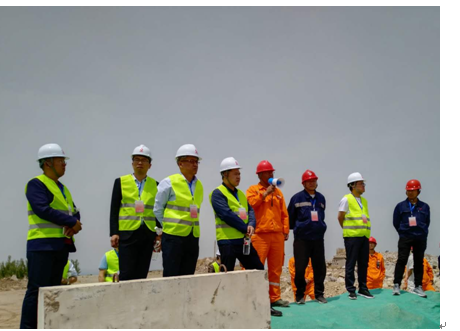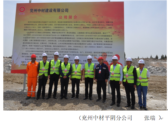 5月6日,吉林天池鉬業(yè)有限公司領(lǐng)導(dǎo)在平陰山水水泥有限公司,黨委書記侯福存、兗州中材建設(shè)有限公司總經(jīng)理柯升、副總經(jīng)理張?zhí)m青的陪同下,蒞臨兗州中材平陰分公司礦山施工現(xiàn)場(chǎng)參觀指導(dǎo)。