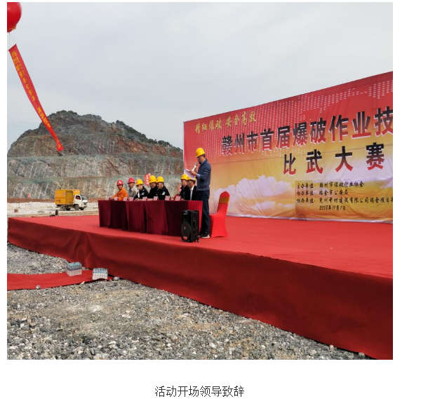 為了推廣‘精細(xì)爆破,安全高效’的先進(jìn)爆破經(jīng)驗(yàn),提升爆破作業(yè)人員的業(yè)務(wù)技能,培養(yǎng)高素質(zhì)的爆破作業(yè)隊(duì)伍,應(yīng)贛州市公安局要求,2018年11月01日兗州中材建設(shè)有限公司瑞金項(xiàng)目部協(xié)同贛州市爆破行業(yè)協(xié)會(huì)在瑞金萬(wàn)年青貓子寨石灰石礦山舉辦了贛州市首屆爆破作業(yè)技能與安全比武大賽活動(dòng)。 本次“贛州市首屆爆破作業(yè)技能與安全比武大賽”是贛州市舉辦的第一屆爆破大比武活動(dòng),共有60余人參加比賽,另外還有贛州區(qū)域公安干警及各涉爆單位人員代表120余人到現(xiàn)場(chǎng)觀摩。賽前,項(xiàng)目部副經(jīng)理蘭武林、經(jīng)理助理閆循慧向全體參賽及觀摩人員匯報(bào)了我公司在貓子寨石灰石礦山生產(chǎn)施工情況及礦山爆破施工狀況,組織大家觀摩施工現(xiàn)場(chǎng)?;顒?dòng)競(jìng)賽分理論考核和實(shí)踐操作考核兩部分?;顒?dòng)現(xiàn)場(chǎng)參賽人員積極認(rèn)真,觀摩人員井然有序,比賽過(guò)程嚴(yán)肅緊張。