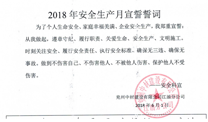 今年6月是全國(guó)第17個(gè)“安全生產(chǎn)月”, 6月1日,兗州中材江油分公司安全生產(chǎn)月活動(dòng)啟動(dòng)儀式在項(xiàng)目部會(huì)議室隆重召開,本次活動(dòng)主題為“生命至上、安全發(fā)展”。項(xiàng)目部領(lǐng)導(dǎo)、員工共計(jì)40余人參加了本次安全生產(chǎn)月啟動(dòng)儀式。 會(huì)上,安全科傳達(dá)《2018年安全生產(chǎn)月活動(dòng)實(shí)施方案》并對(duì)安全工作進(jìn)行闡述與部署。組織員工觀看安全教育宣傳片,通過(guò)對(duì)典型真實(shí)案例的生動(dòng)再現(xiàn),使員工真正從思想深處懂得安全,重視安全,時(shí)時(shí)刻刻想著安全,增強(qiáng)職工安全意識(shí),強(qiáng)化安全理念,提高職工的安全素質(zhì)。項(xiàng)目副經(jīng)理強(qiáng)調(diào),安全是社會(huì)經(jīng)濟(jì)發(fā)展的需要,是企業(yè)自身發(fā)展的需要,是從業(yè)人員參與勞動(dòng)的需要。要樹立“紅線意識(shí)”,堅(jiān)決落實(shí)崗位責(zé)任;加強(qiáng)安全教育宣傳,定期排查隱患,完善安全體制建設(shè),依法治安、依法作業(yè);堅(jiān)持“安全第一、預(yù)防為主、綜合治理”的方針,持續(xù)有效推動(dòng)公司安全生產(chǎn)形勢(shì)穩(wěn)定發(fā)展。項(xiàng)目經(jīng)理要求,一是要加強(qiáng)領(lǐng)導(dǎo)、高度重視,正確把握當(dāng)前安全形勢(shì),突出落實(shí)安全責(zé)任主線,深刻認(rèn)識(shí)開展“安全生產(chǎn)月”活動(dòng)的重要意義;二是要圍繞主題、協(xié)調(diào)推進(jìn),大力宣傳黨和國(guó)家的安全生產(chǎn)方針政策、法律法規(guī),通過(guò)開展一系列安全活動(dòng),進(jìn)一步營(yíng)造“關(guān)愛生命、關(guān)注安全”的安全氛圍;三是要扎實(shí)開展、狠抓落實(shí),以“安全生產(chǎn)月”活動(dòng)為契機(jī),在保持雙體系有效運(yùn)行的同時(shí)做到統(tǒng)一思想、提高安全意識(shí),為公司安全穩(wěn)定、和諧發(fā)展提供有力保障;四是要強(qiáng)化培訓(xùn)、提升意識(shí),圍繞國(guó)家法律法規(guī),開展員工安全教育培訓(xùn),全面提升全員綜合安全素質(zhì)及法制意識(shí),強(qiáng)化依法治企、依規(guī)治企。會(huì)議最后,項(xiàng)目部組織全體員工進(jìn)行安全月宣誓和簽名,安全生產(chǎn)月正式拉開帷幕。