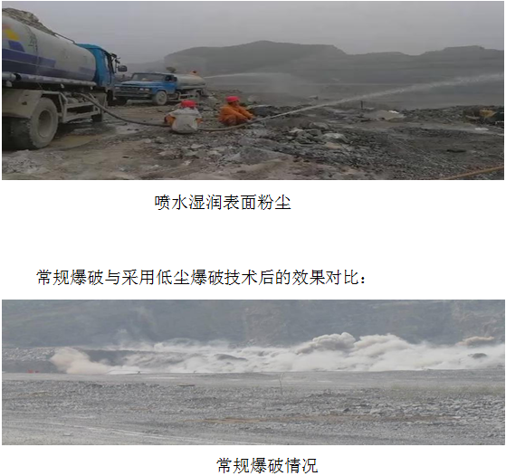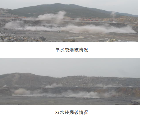 (5)、采用低塵爆破技術(shù)對于礦山爆破進(jìn)行降塵作業(yè): 爆破粉塵的來源:一是爆破物體表面的粉塵,鉆孔產(chǎn)生的巖粉;二是爆破物體破碎產(chǎn)生的粉塵,爆破物體坍塌產(chǎn)生的粉塵,爆炸沖擊波和爆炸氣體揚(yáng)起的粉塵。 爆破粉塵的危害:一是環(huán)境危害,主要包括大氣污染和生態(tài)系統(tǒng)的破壞,粉塵污染后的空氣通過大氣循環(huán)對周邊的城市空氣質(zhì)量造成嚴(yán)重影響;二是社會危害,對人體健康危害,引起塵肺病等。 目前,關(guān)于爆破降塵有多種不同的工藝,其中利用水袋進(jìn)行低塵爆破技術(shù)的降塵是一種相對方便 水袋法降塵爆破主要依據(jù)炸藥爆炸使水袋中的水形成水霧霧滴,水霧霧滴都是有一定大小,水霧水滴對爆破粉塵進(jìn)行捕捉而濕潤塵粒,達(dá)到降塵效果。 根據(jù)水霧霧滴與粉塵作用原理,水霧霧滴對粉塵的作用時間越長越好,因此應(yīng)設(shè)定水袋受爆炸沖擊波影響一定的時間間隔,使水霧霧滴與粉塵具有較長的作用時間。為加強(qiáng)除塵效果,單個炮孔的周圍不會只設(shè)置1個水袋,因此還要確定不同布置位置水袋起爆時間。 以上單水袋、雙水袋的設(shè)置位置是在裝藥完成之后,在堵塞段中考慮設(shè)置的水袋位置。底部水袋:是指自裝藥完成后,在堵塞段的底部安放的水袋,其水袋與炸藥緊密接觸,水袋安放注水后再行填塞;頂部水袋:是指在填塞的最后時,預(yù)留一定的空間安放水袋;水袋注水后都是填塞的一部分,與填塞形成一個整體。 對于鉆孔巖粉經(jīng)設(shè)備收塵后,都是堆積在炮孔口附近,與爆破物體表面粉塵在經(jīng)歷爆破震動及爆破沖擊波的沖擊后,粉塵都將揚(yáng)起,在起爆前需要用水將鉆孔巖粉及爆破物體表面粉塵進(jìn)行濕潤處理,使其在爆破時的爆破震動及爆破沖擊波不能形成揚(yáng)塵。
