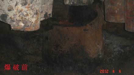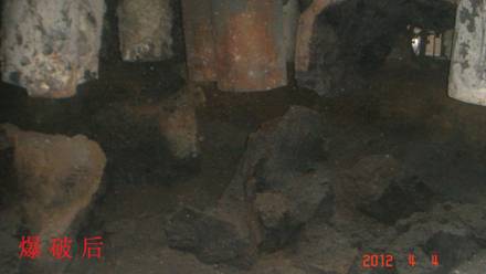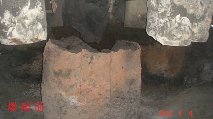 兗州中材建設(shè)有限公司云維項目部 實施石墨電極分解爆破 4月4日,應(yīng)云維乙炔化工有限公司(業(yè)主)要求,我項目部對其廠區(qū)1#電石爐內(nèi)石墨電極成功實施分解爆破。 本次爆破點位于業(yè)主電石車間二層電石爐內(nèi),技術(shù)人員和安全員經(jīng)現(xiàn)場勘查發(fā)現(xiàn):石墨電極為直徑1.2m、高約1.5m的圓柱狀石墨體,從中心呈輻射狀均勻分布12塊約1cm厚鋼板。三個電極呈“品”字狀分布在一個直徑約7~8米的幾乎密閉的鋼制反應(yīng)爐內(nèi)(有洞口)。爆前充分勘察了爆區(qū)周圍的實際情況,結(jié)合從網(wǎng)絡(luò)上搜集的對石墨電極的性能分析和以往的爆破經(jīng)驗,選用合適的爆破器材,擬定了幾種爆破方案。充分分析爆破方案的可行性后,選擇其中可行性較高的兩種方案進行了試爆,結(jié)合兩次試爆效果,經(jīng)調(diào)整爆破參數(shù)后,最終成功拆除。 本次爆破對僅隔約10米遠、正在生產(chǎn)的2#爐和庫房未產(chǎn)生任何影響。 這次爆破工作雖小,但我們本著謹(jǐn)慎、科學(xué)的態(tài)度對待。從爆破參數(shù)的選擇到安全警戒都認(rèn)真小心,取得了預(yù)想的效果。 通過這次爆破,積累了對巖石以外材料的爆破經(jīng)驗,也增加了我項目部尤其是年輕人工作技能。也到了業(yè)主的認(rèn)可。 孟永旺