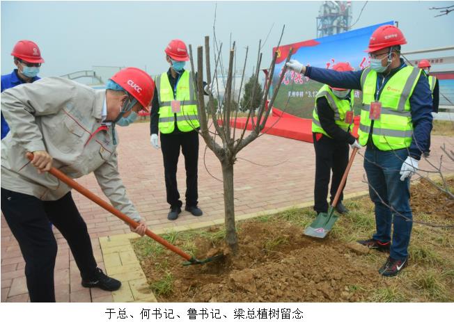 中材礦山總會計師于劍平、兗州中材黨委副書記何芳訓(xùn)、紀委書記魯臣參加了泰安分公司落虎山水泥用灰?guī)r礦開展“黨旗紅礦山綠”主題植樹節(jié)活動。