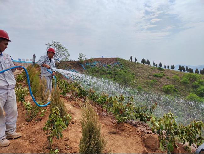 種植完后,大家拖著長長的水管,從水車上接通,水花劃出美麗的彩虹,一道道水線將生命之源給予剛剛種下的綠色希望。雖然大家已經(jīng)汗流浹背,但是想著能把我們的礦山建設(shè)成為綠色礦山,花園式礦山,一個個都擼起袖子卯足勁加油干。