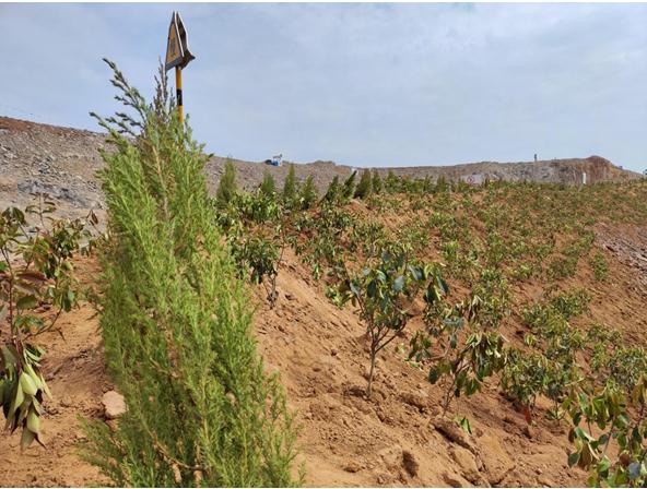 大家弓著身子,腳下踩著礦山新覆蓋的沃土,一層打底,一層加固施肥,植下綠色的希望。站在礦山之巔,望著礦山一片春色,環(huán)山而上綠色海洋生機盎然,春風拂過,蕩起微微波瀾,這樣的美色是我們礦山種植者的功勛?;厥淄?,灰禿禿的一片是我們記憶中對礦山的寫照,而現(xiàn)在綠油油的生機點燃的是建設(shè)綠色礦山的星星之火。