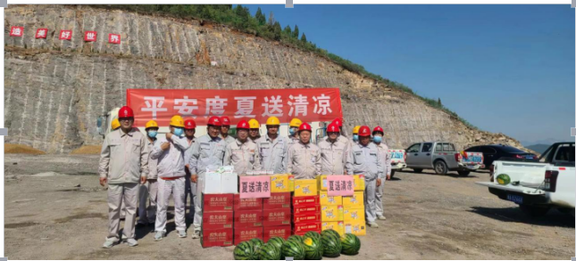 炎炎夏日,驕陽似火。6月15日上午,登封中聯(lián)總經(jīng)理潘鳳祎,常務(wù)副總經(jīng)理劉振河,財(cái)務(wù)總監(jiān)靳一平一行,到鞍子嶺礦山慰問在高溫下奮戰(zhàn)的一線員工,并給一線員工送來了西瓜、礦泉水、冰紅茶、涼茶、藿香正氣水等慰問品,對(duì)一線員工的辛勤工作給予了肯定。