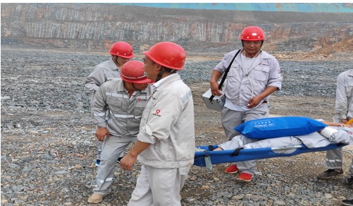 本次演練以持續(xù)強(qiáng)降雨天氣導(dǎo)致北側(cè)184平臺(tái)掉落石塊砸傷人員,且170平臺(tái)積水嚴(yán)重,集水坑水位明顯上漲為背景,以應(yīng)急救援預(yù)案啟動(dòng)、部門協(xié)同救援為主線,充分運(yùn)用機(jī)械施救、人工施救、專業(yè)施救等手段展開應(yīng)急救援。