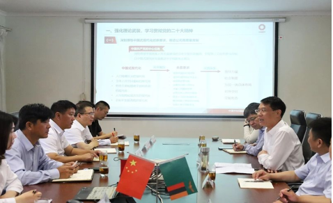 1月20日上午,蔣中文向中材礦山、蘇州中材、中材建設(shè)、智慧工業(yè)等在贊比亞團隊講授主題為“自信自立、守正創(chuàng)新、勇?lián)鷩H化發(fā)展前沿重任”的黨課,并提出以下要求:一是強化理論武裝,充分學習貫徹黨的二十大精神。二是牢固樹立戰(zhàn)略思維,確保中材國際發(fā)展戰(zhàn)略在贊比亞有效落實。三是堅持立足屬地發(fā)展,接續(xù)公司國際化發(fā)展偉大事業(yè)。