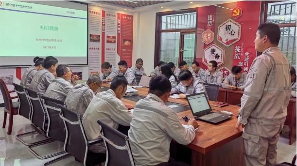 | 為深入學(xué)習(xí)貫徹黨的二十大精神,團(tuán)結(jié)動(dòng)員廣大職工群眾立足崗位、主動(dòng)擔(dān)當(dāng),務(wù)實(shí)作為、聚力攻堅(jiān),推動(dòng)公司2023年度工作目標(biāo)任務(wù)完成。9月19日下午,白坪分公司開展“六比六保六爭(zhēng)取”知識(shí)競(jìng)賽活動(dòng),項(xiàng)目經(jīng)理宋道明主持競(jìng)賽。