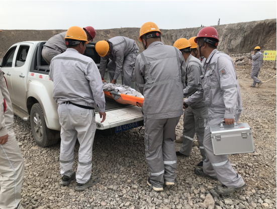 上午10時(shí)整,演練正式拉開(kāi)序幕。假設(shè)情況是該露天礦山某區(qū)域發(fā)生了邊坡坍塌,造成一名作業(yè)人員腿部受傷被困。接到報(bào)告后,項(xiàng)目副經(jīng)理?xiàng)钣盍⒓磫?dòng)應(yīng)急預(yù)案,迅速組織了由醫(yī)療救護(hù)組、應(yīng)急搶險(xiǎn)組、警戒保衛(wèi)組、物資保障組等部門人員組成的應(yīng)急救援隊(duì)伍,攜帶救援裝備,迅速趕赴事故現(xiàn)場(chǎng)。同時(shí),通訊保障組也迅速建立起臨時(shí)通訊網(wǎng)絡(luò),確?,F(xiàn)場(chǎng)信息暢通無(wú)阻。