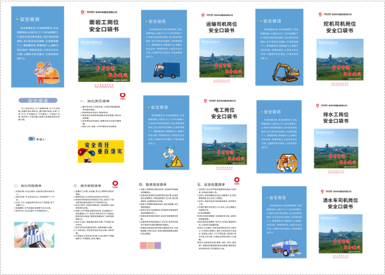 口袋書封面背頁以安全為主題,與生產(chǎn)相結(jié)合,內(nèi)容包括安全文化標語、口號、個人安全承諾、具體崗位職責(zé)要求、風(fēng)險辨識、操作規(guī)范、隱患排查、應(yīng)急處置等。