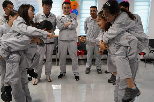 為豐富職工業(yè)余文化生活,提升團(tuán)隊(duì)凝聚力和向心力,以更好成績獻(xiàn)禮建黨100周年,5月13日,由中材礦山主辦兗州中材曲阜分公司承辦的“逐夢新時(shí)代,奮斗新征程”主題團(tuán)建活動(dòng)在曲阜分公司舉行。中材礦山黨群部部長鄔云齊齊格、兗州中材黨群部部長李增光、綜合辦公室主任李翠松、黨群部逯瑞、曲阜分公司及泗水分公司青年團(tuán)員參加了此次活動(dòng)。 團(tuán)建活動(dòng)場地設(shè)在曲阜分公司辦公室,活動(dòng)項(xiàng)目有:我來比你來猜 、疊報(bào)紙、吸管運(yùn)輸、拋繡球、集體造句、猜數(shù)字。 1、我來比你來猜 表演的一組兩人先要面對面(一人為表演動(dòng)策劃,一人為猜測者),當(dāng)表演者表演完,猜測者能猜出表演者所做動(dòng)作的成語或詞語,在規(guī)定時(shí)間內(nèi),猜對詞語最多的一組獲勝。 2、疊報(bào)紙 將2張4開的報(bào)紙放在地上,每張報(bào)紙上站5個(gè)人,每個(gè)小組派一個(gè)代表與對方猜拳,輸?shù)舻男〗M須將腳下的報(bào)紙對折后再站在上面(所有的雙腳都不許著地),直到其中一方站不上去為止。 3、吸管運(yùn)輸 每人嘴里叼一支吸管,第一個(gè)人在吸管上放一個(gè)有一定重量的鑰匙環(huán),用嘴叼吸管的姿勢把鑰匙環(huán)傳給下個(gè)人,直到傳到最后一個(gè)人嘴叼的吸管上,用時(shí)最短組獲勝。 4、拋繡球 每組推選四個(gè)人,一個(gè)人背筐,其他三人投球,每人三個(gè)球,最終以接球的多少?zèng)Q定勝負(fù)。 5、集體造句 游戲開始向每小組第一位組員隨意在紙上寫一個(gè)字,然后將筆和紙傳給第二人,第二人按要求寫完一個(gè)字后交給第三位組員……直到組成一個(gè)句子。 6、猜數(shù)字 先在一張紙上寫一個(gè)數(shù)字,讓裁判看見,之后大家依次說一個(gè)數(shù)字,由裁判告知猜得數(shù)字比預(yù)先寫的數(shù)字是高了還是低了,逐步逼進(jìn)目標(biāo)。 活動(dòng)結(jié)束后,曲阜分公司為參加活動(dòng)的青年團(tuán)員頒發(fā)了紀(jì)念品。 通過活動(dòng)的開展,使員工在枯燥繁忙工作之余得到調(diào)節(jié)和緩解、實(shí)現(xiàn)勞逸結(jié)合,促進(jìn)員工的工作積極性,增強(qiáng)員工凝聚力和向心力,培育員工的企業(yè)歸屬感和集體榮譽(yù)感,激勵(lì)員工全身心投入工作,進(jìn)一步激發(fā)了員工們團(tuán)結(jié)奮進(jìn)、凝心聚力的干勁,為推動(dòng)企業(yè)高質(zhì)量發(fā)展貢獻(xiàn)自己的力量。