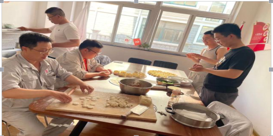 端午節(jié)的前一天,分公司安排食堂后勤去采購粽子、鹵肉等食品,下午三點(diǎn)鐘大家開始忙碌起來,一起動(dòng)手包餃子,忙的不亦樂乎。不僅增加了節(jié)日氣氛,還能品嘗自己的勞動(dòng)成果,塑造良好的企業(yè)文化。