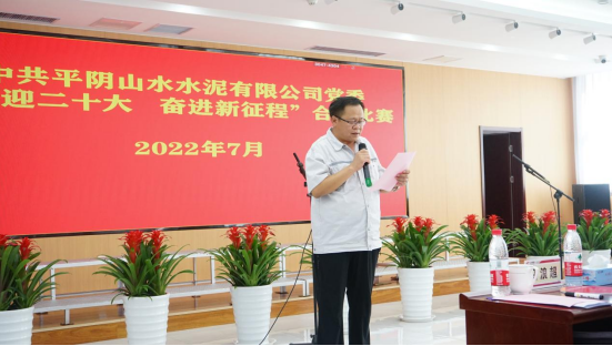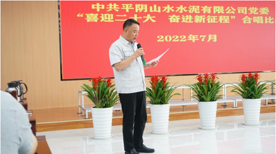今年是偉大的中國共產(chǎn)黨建黨101周年華誕,為慶祝黨的百年華誕中共平陰山水水泥有限公司黨委組織開展“喜迎二十大 奮斗新征程”合唱比賽。 7月8日下午15:30分,隨著歡快的《迎賓進行曲》的響起,參加合唱比賽的12位評委和5支代表隊依次進場。 本次比賽共分為:行政銷售支部代表隊、塑編支部代表隊、生產(chǎn)一支部代表隊、生產(chǎn)二支部代表隊和兗州中材平陰分公司與礦管辦代表隊。 15:50分活動正式開始,平陰山水黨委書記侯福存發(fā)表主旨講話:今年是建黨101周年。100多年來,我黨團結(jié)帶領(lǐng)全國各族人民自強不息、拼搏進取,戰(zhàn)勝艱難險阻,取得了舉世矚目的輝煌成就,帶領(lǐng)我們昂首闊步邁向偉大復興。今天,我們隆重集會,用歌聲頌揚黨的光輝歷史,緬懷黨的豐功偉績,向黨的101歲華誕獻禮,向黨的二十大獻禮。公司黨委舉辦本次合唱大賽,既是豐富黨建工作形式、促進黨建和公司中心工作高度融合的重要舉措,也希望通過比賽,進一步增強黨群、干群凝聚力和向心力,激勵全體干部職工堅定信念、迎難而上,在“百日趕超”勞動競賽中繼續(xù)立足崗位、攻堅克難,全力沖刺“大趕超”任務(wù)目標,為公司項目建設(shè)和高質(zhì)量發(fā)展貢獻更大力量。 最后,侯書記宣布合唱比賽開始。