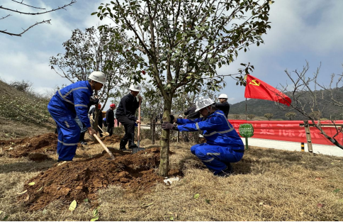德安萬年青水泥有限公司總經(jīng)理歐陽常崙進行二十大精神宣貫 學習結(jié)束,參會人員到礦山現(xiàn)場開展“黨旗紅、添新綠”主題黨日植樹活動,以實際行動踐行綠色發(fā)展理念。